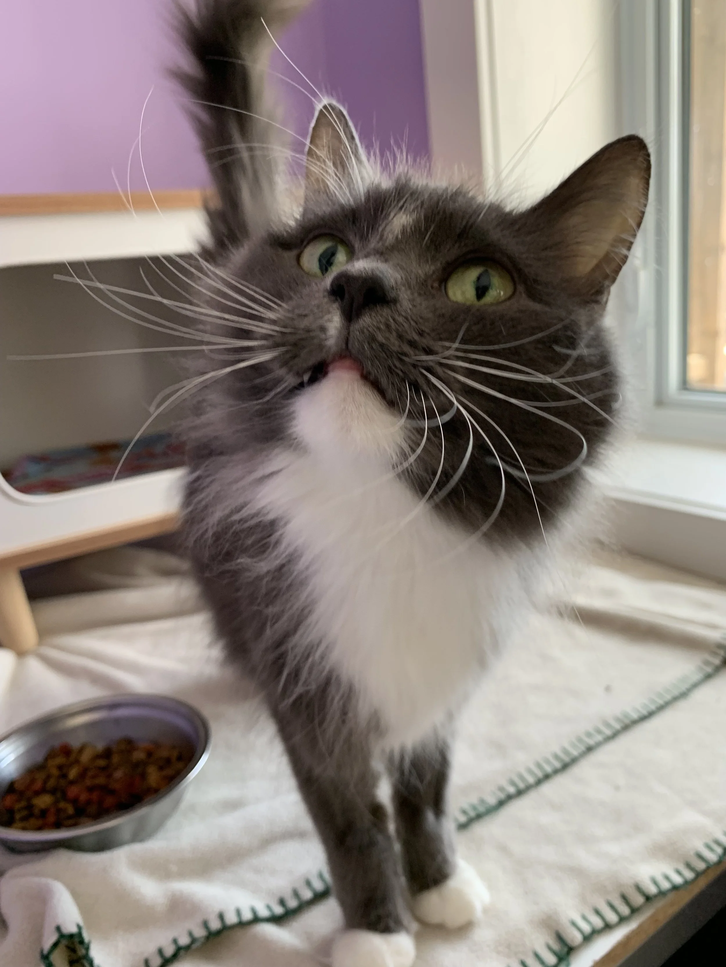 This cutie has decided she is no longer shy and has become quite affectionate! Sneaky lived with other cats and is doing well meeting new kitty friends at the shelter.