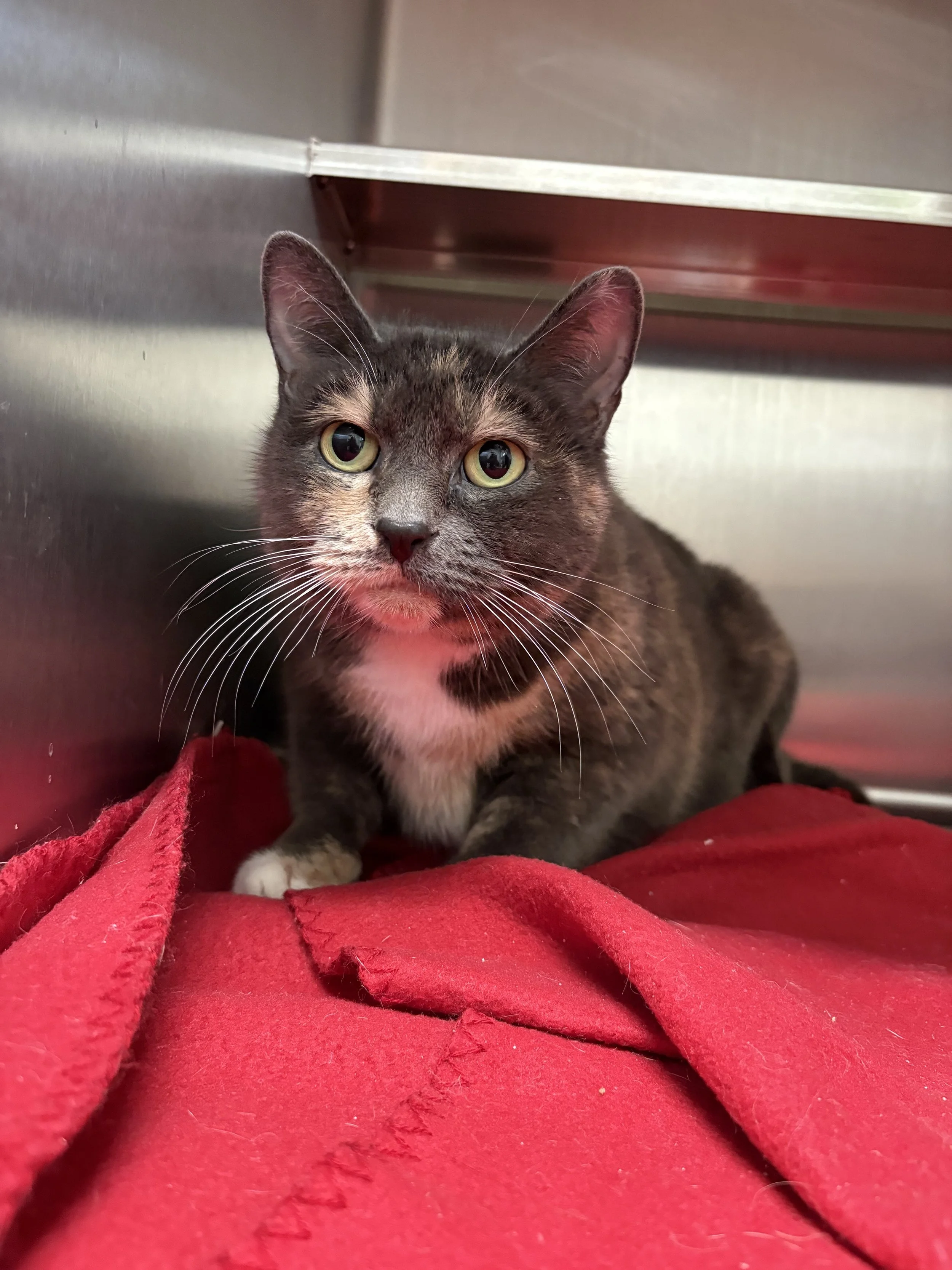 Her adoption fee is $100 (partially sponsored). She is microchipped, flea/tick treated, FIV/FelV negative, dewormed, has had her first vaccine, and an examination from a veterinarian. She is spayed.