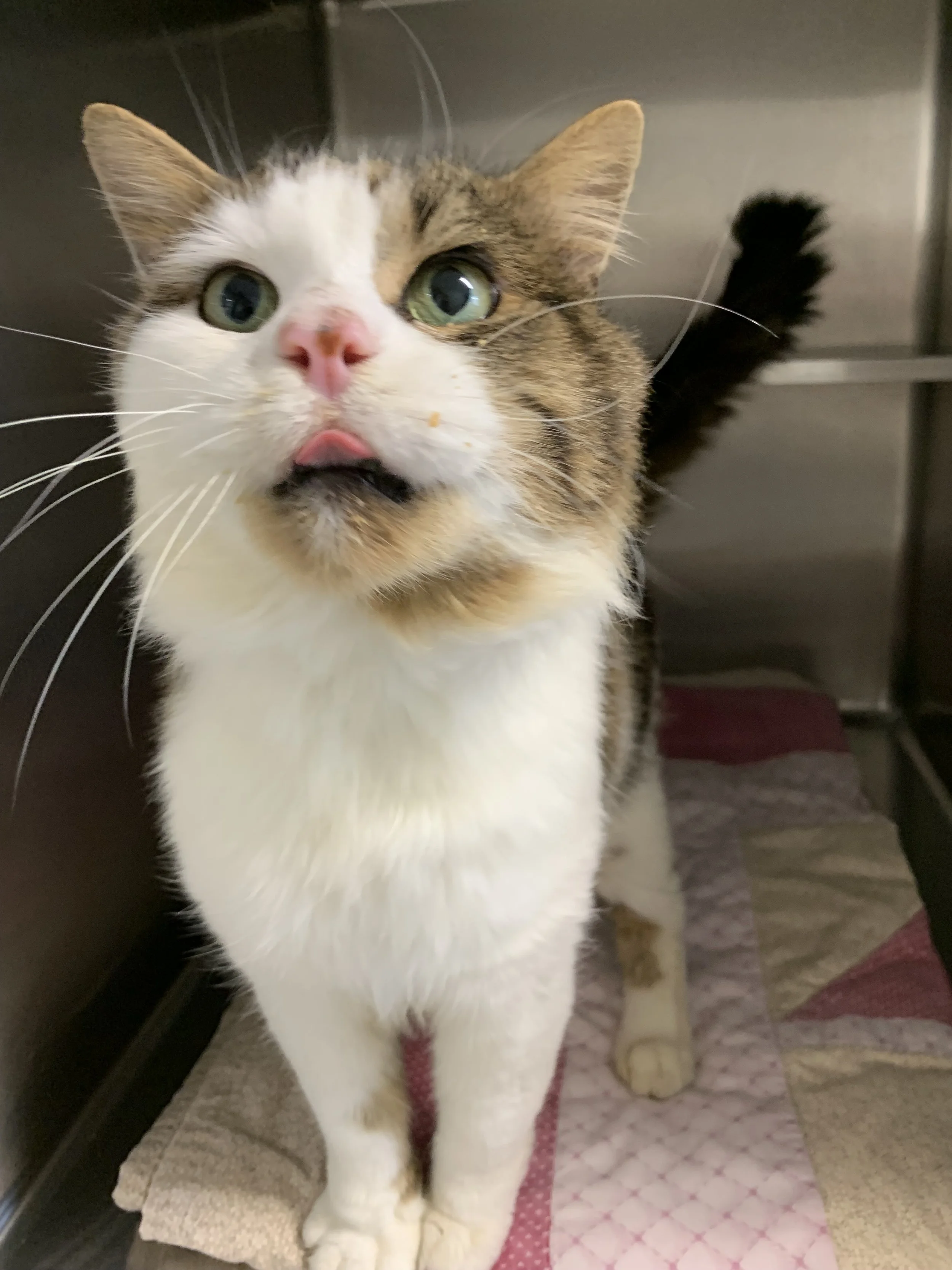This sweet guy was brought into the shelter as a stray. He's off the streets and now living a life of luxury. Snicklefritz was getting into scraps with other cats while he was living outside. He's going to be neutered tomorrow, and we'll get a better idea how he does with other kitties after he heals. Snicklefritz is a friendly boy who loves affection and lickable treats!